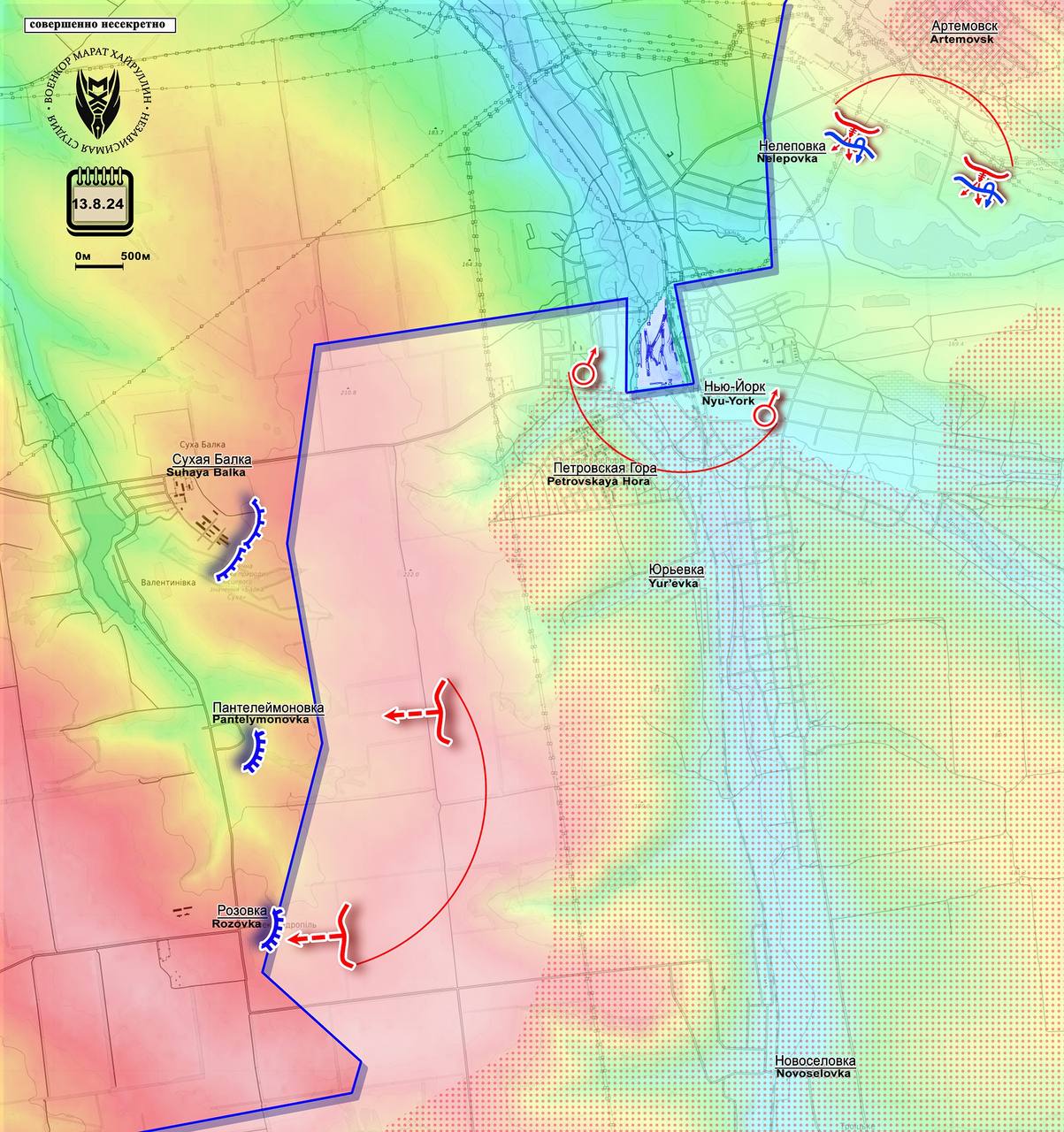 К юго-востоку от Водяного идут ожесточённые бои на подступах к трассе Т-05-24. После нескольких месяцев сражений в балках Икряной и Солёненькой российские войска смогли приблизиться и взять транспортную артерию под огневой контроль ещё в нескольких местах. Это делает практически невозможным её использование противником для снабжения гарнизонов Угледара и Константиновки. Дальнейшее наступление на данном участке в перспективе позволит ВС РФ обойти подразделения ВСУ в Константиновке и её окрестностях с юга и взять под огневой контроль участок трассы С-05-11-33 Катериновка – Константиновка, значительно осложнив снабжение гарнизона последней, пишет Телеграм-канал «Рыбарь».