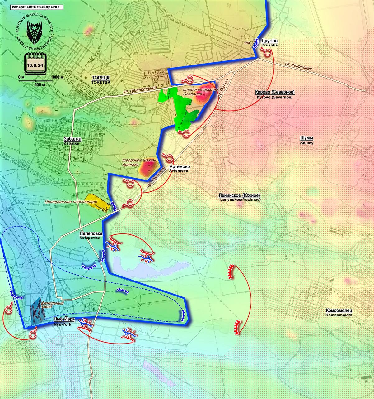 В н.п. Кирово бойцы наших подразделений продвинулись в районе ул. Центральная и вышли здесь к административным границам Торецка. Террикон шахты Северная при этом оказался в глубоком полу обхвате, но у ВСУ пока ещё есть подходы к нему через лесной массив, расположенный между Кирово и Торецком и Кирово с Артёмово.