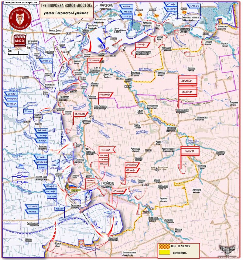 Карта СВО 5 февраля 2026 года. Запорожское направление