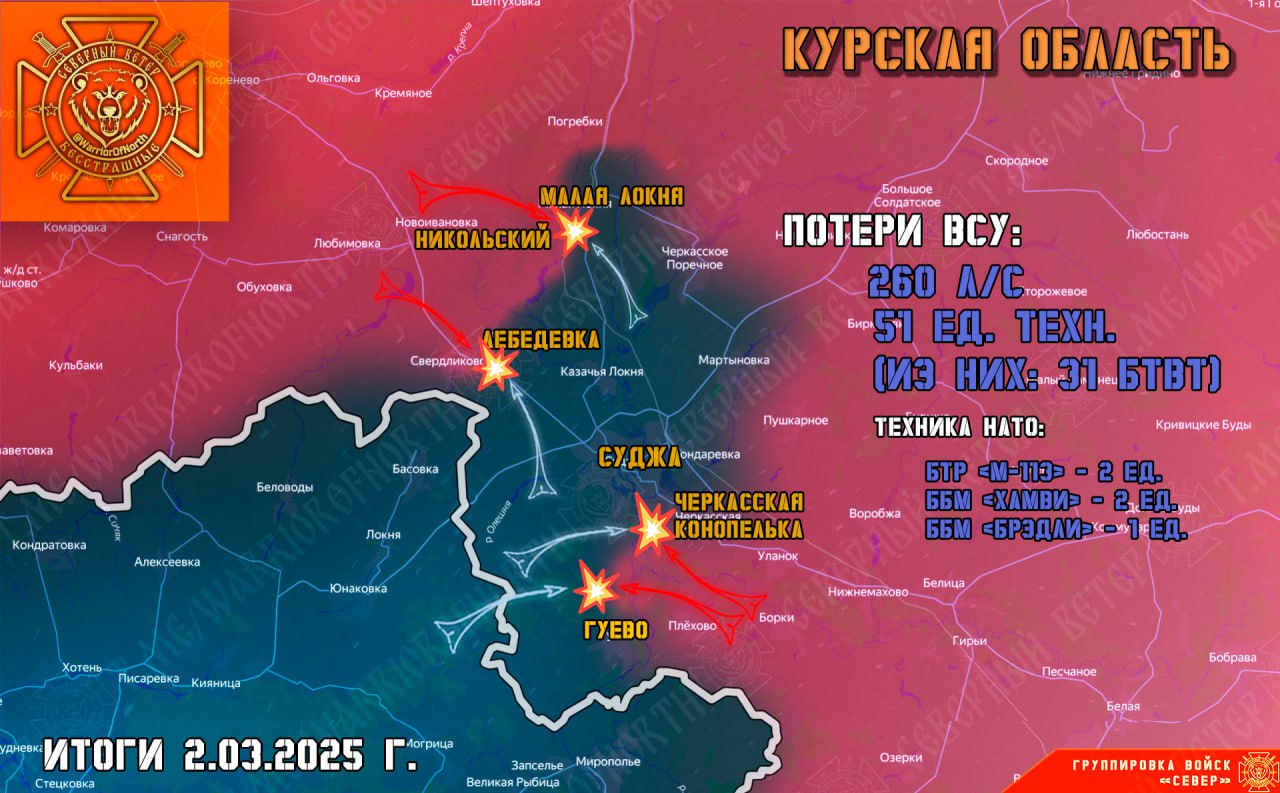 Сводка Министерства обороны Российской Федерации о ходе проведения специальной военной операции (по состоянию на 3 марта 2025 г.)