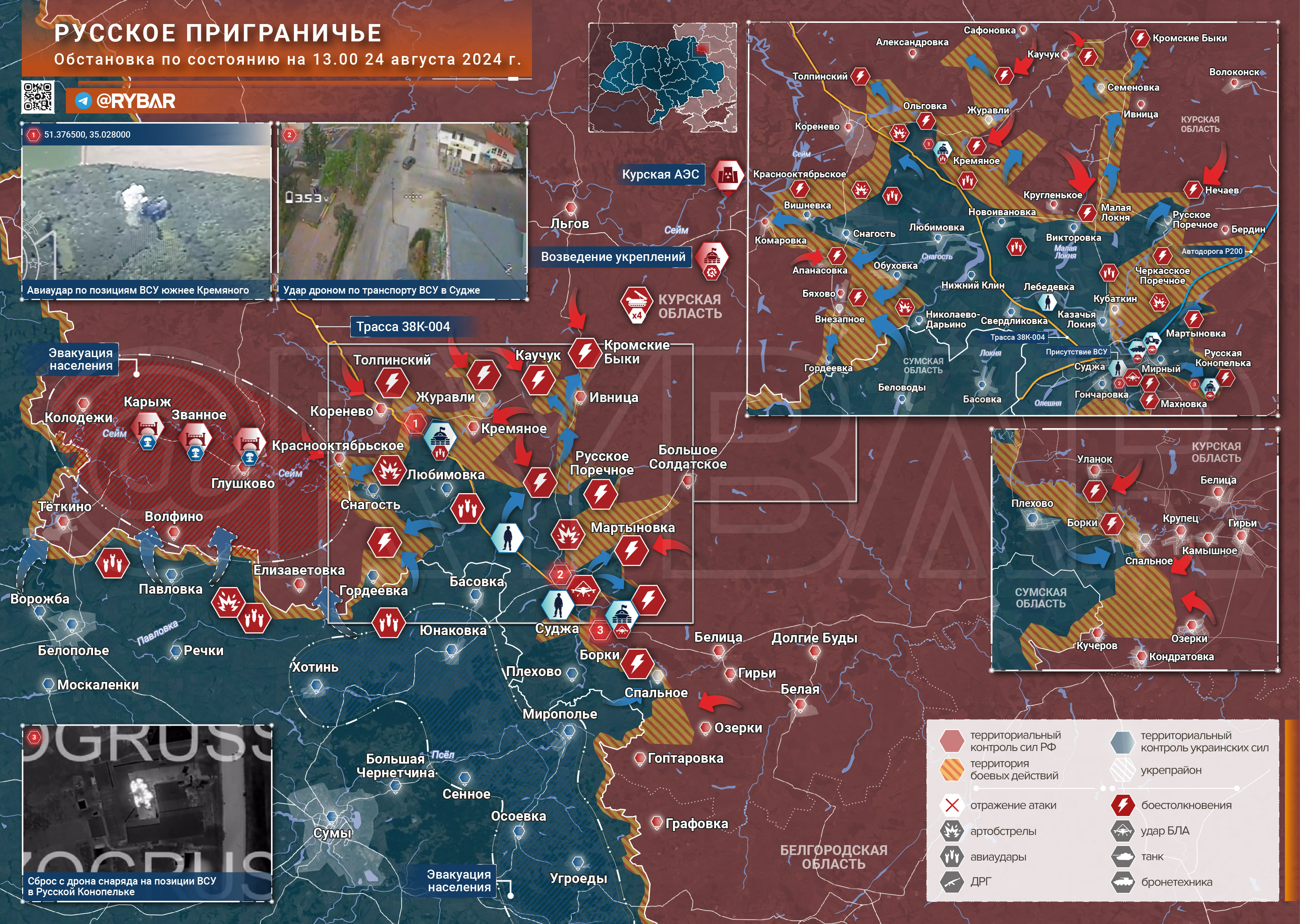 КУРСКОЕ направление: обстановка по состоянию на 13:00 23 августа 2024 года.