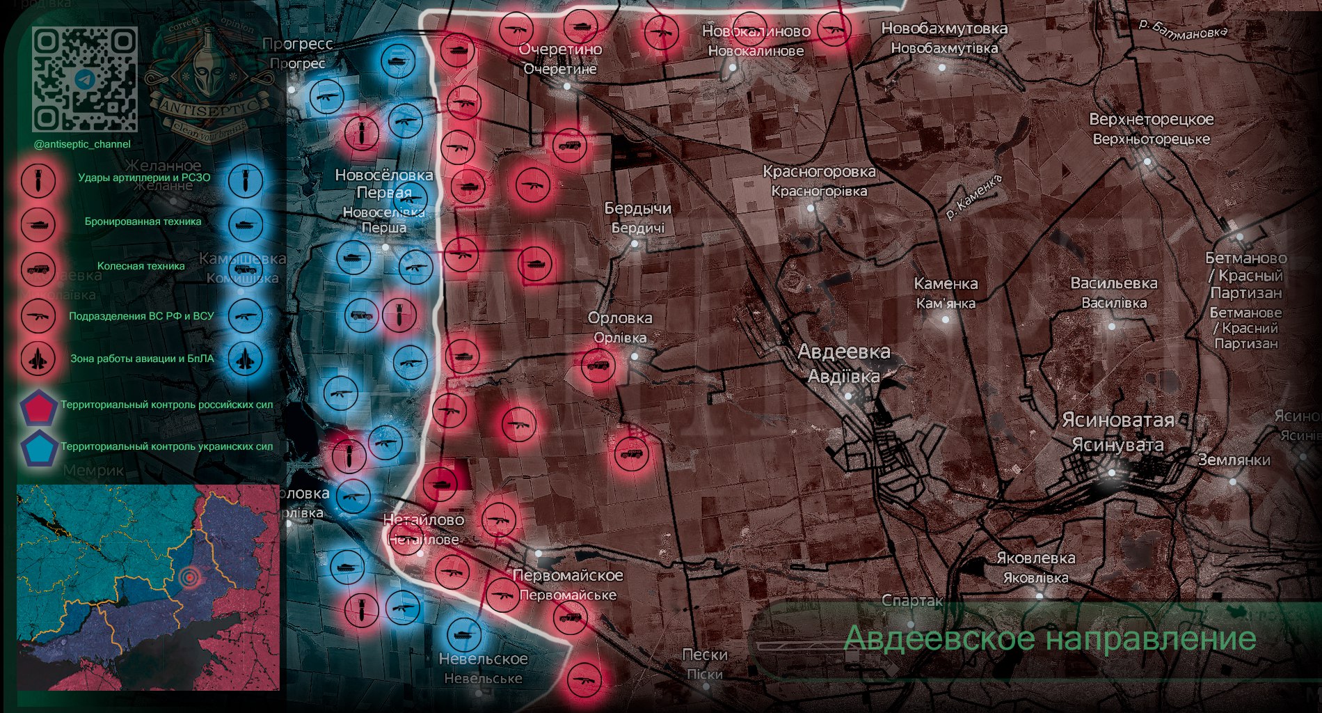 Севернее Архангельского и Керамика также идут бои. Подразделениям ВС РФ удалось немного расширить зону контроля, сообщает канал ANTISEPTIC.
