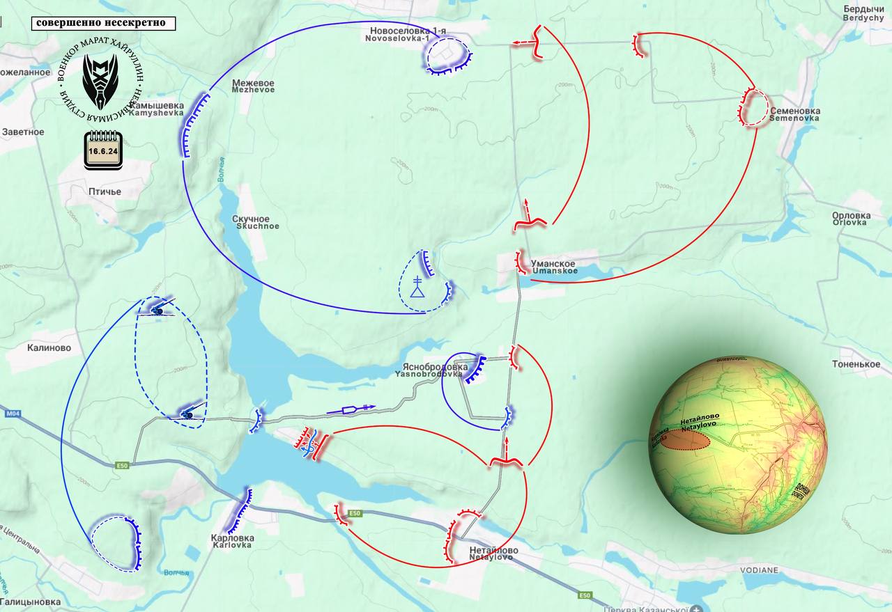 Идёт продвижение наших подразделений в районе Карловского водохранилища, на северном берегу которого наши бойцы вышли к дачному посёлку «Донбасс», за которым лежит единственный путь снабжения укропов, засевших в Яснобродовке. К последней наши уже подошли со стороны Нетайлово, выбив ВСУ из поля и лесополосы западнее дороги Нетайлово – Уманское. И теперь на это село наши давят с юга, с востока и с севера. С востока от села укропы пока ещё держатся на мехдворе и в опорнике перед ним у дороги. Но, учитывая образовавшийся там полуохват, вряд ли у них получится ещё долго здесь сидеть, считает военкор Марат Хайруллин.