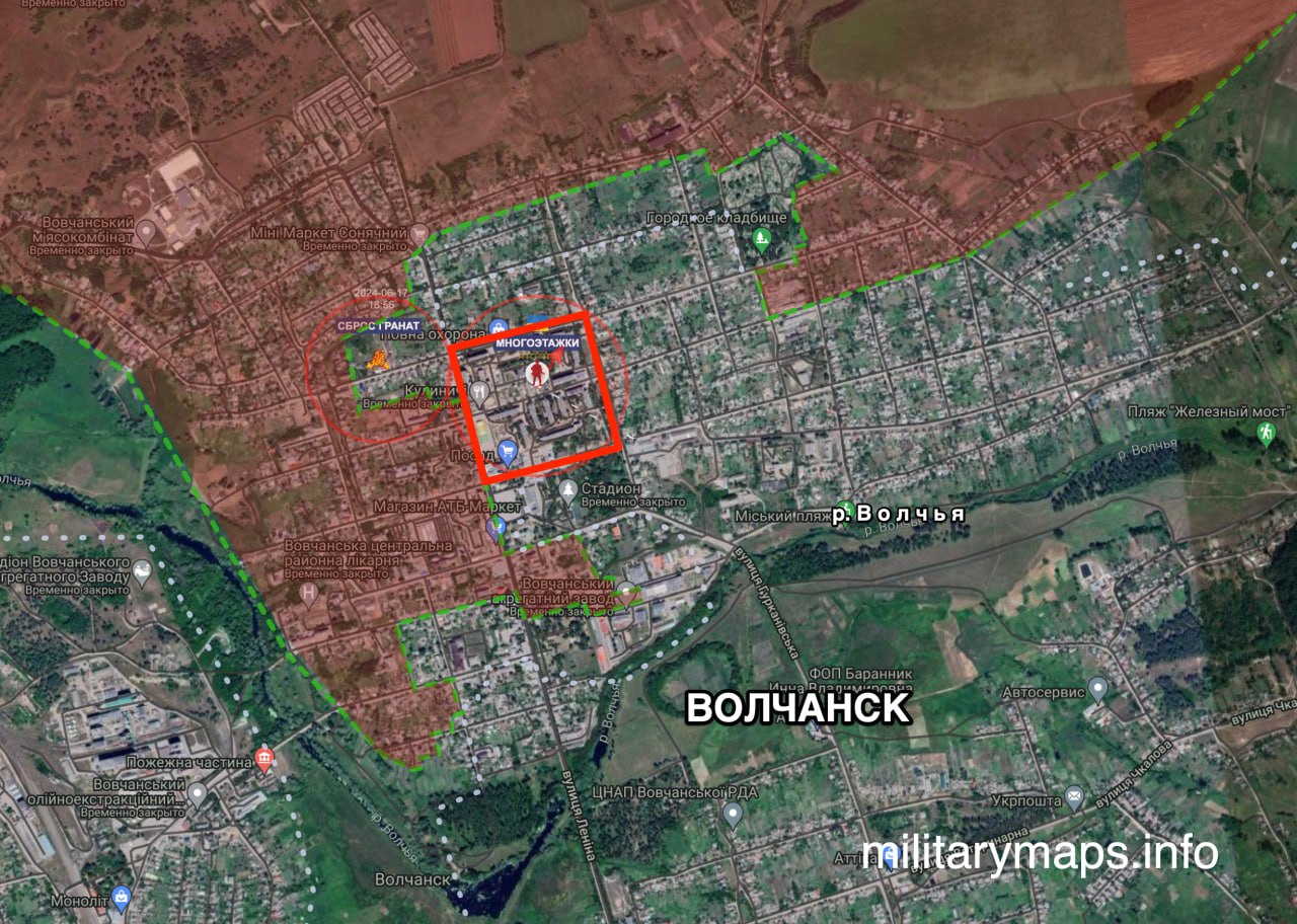На Волчанском участке фронта продолжаются ожесточённые бои в н.п. Волчанск. Штурмовые подразделения ВС России продвигаются на юг.