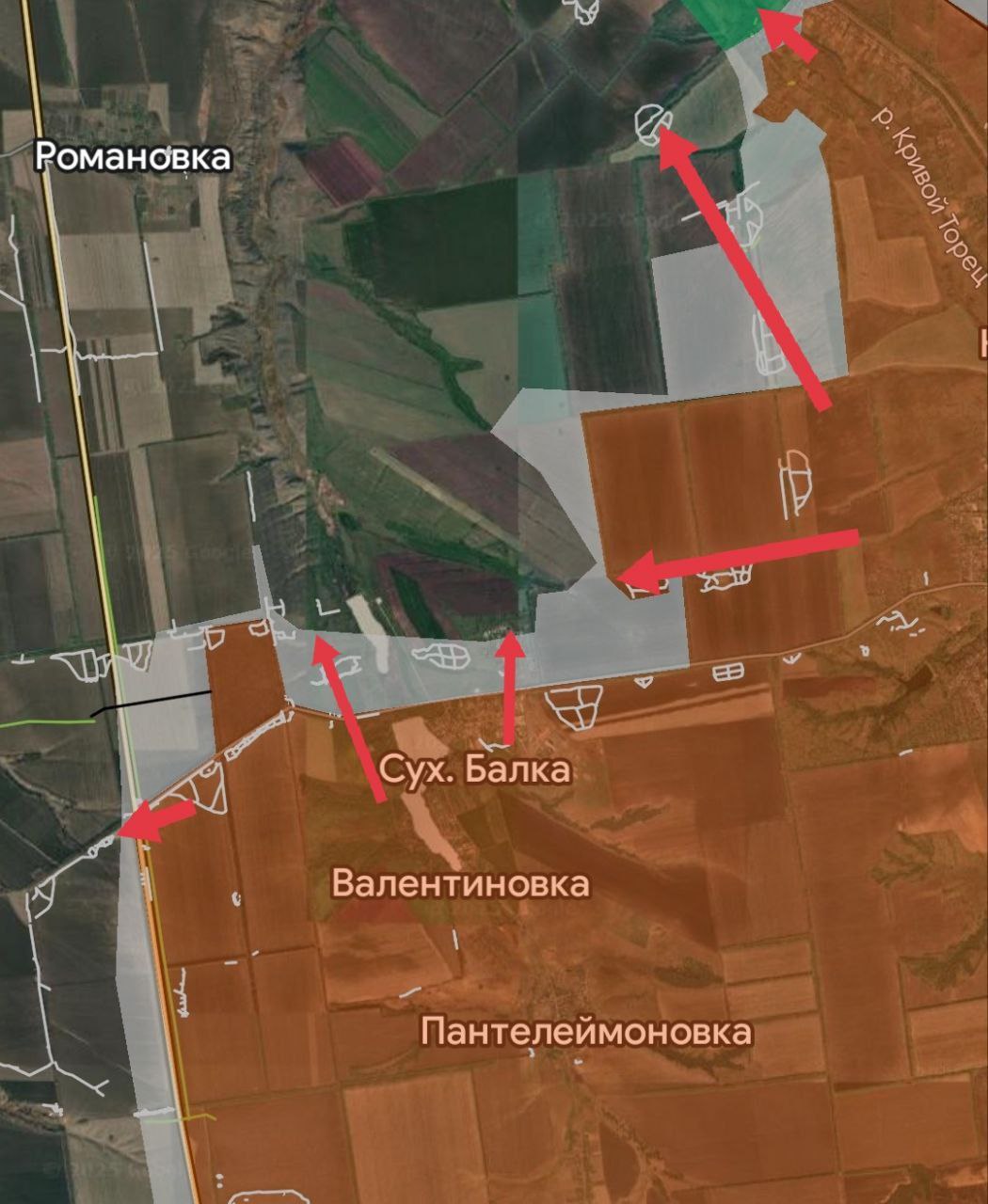 По данным ресурса противника DeepState, ВС РФ установили контроль над Екатериновкой и добились тактических успехов в районах Нового, Преображенки и Сухой Балки.
