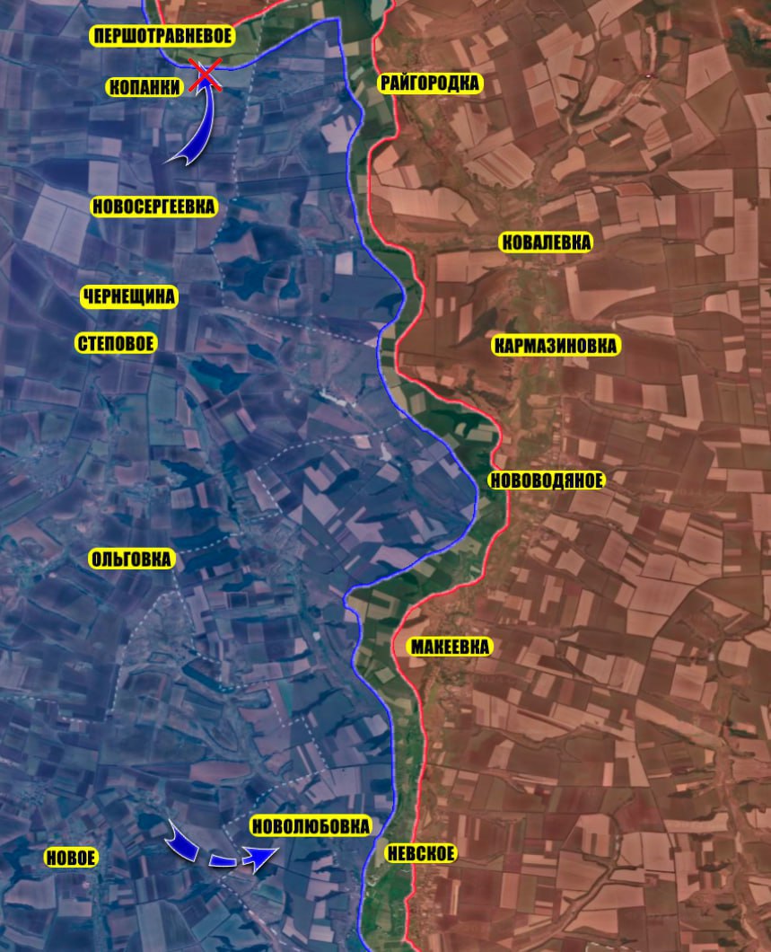 В Новоивановке, исходя из кадров объективного контроля со стороны противника, был восстановлен контроль российских войск, что подтверждают заявления Минобороны России об отражении атак противника.