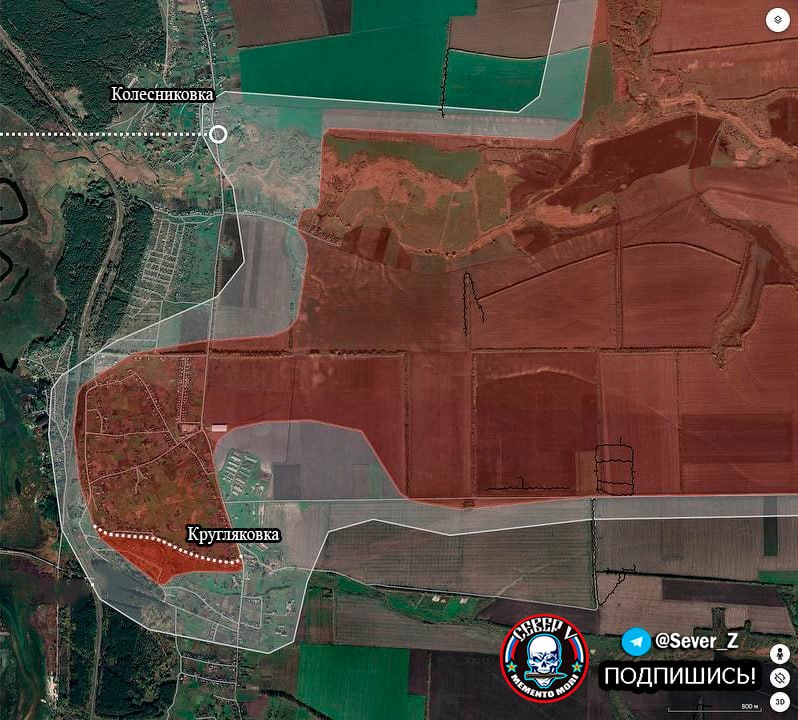 В Кругляковке бойцы ВС РФ продвинулся вдоль улицы Сосновая на глубину до 200 метров и продолжают продвижение в южном направлении.
