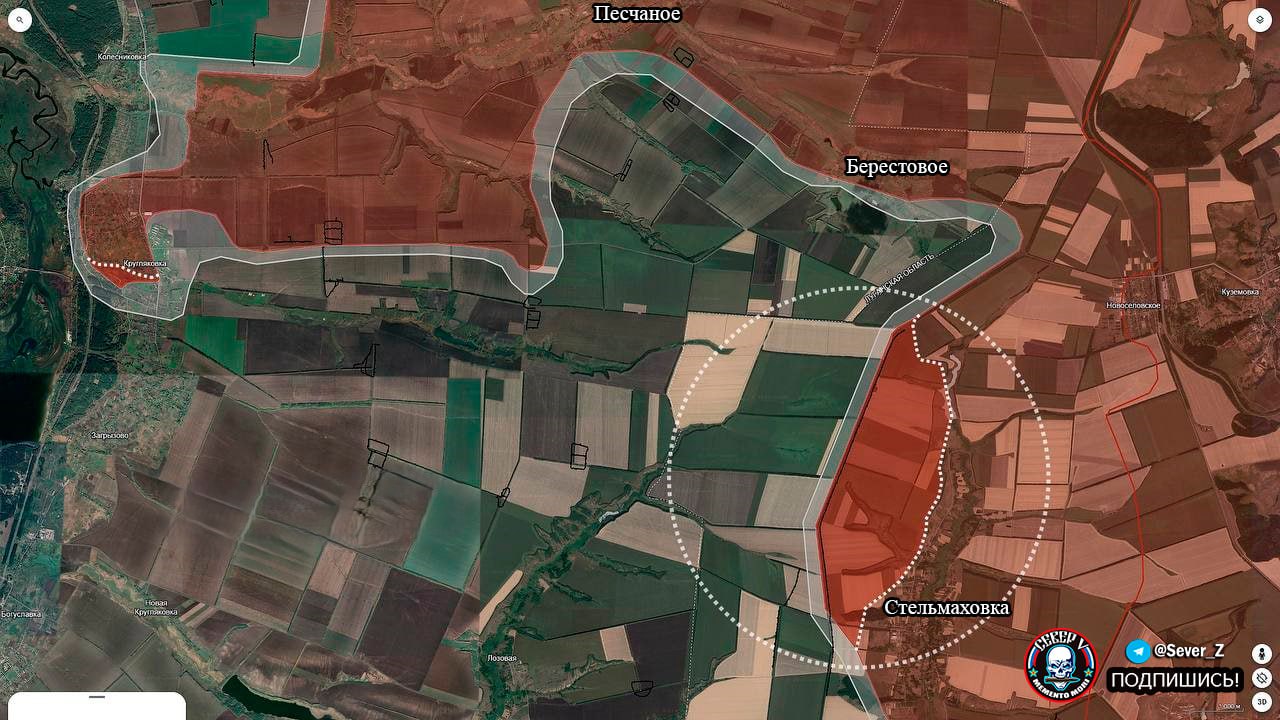 Сватово-Купянск. Зона контроля ВС РФ расширяется в районе Кругляковки и на северо-запад от Стельмаховки, создавая угрозу для противника. Увеличение выступа фронта к реке Оскол формирует условия для возможного наступления российских войск в юго-западном направлении от Берестового, пишет Телеграм-канал «Кременная.РФ».