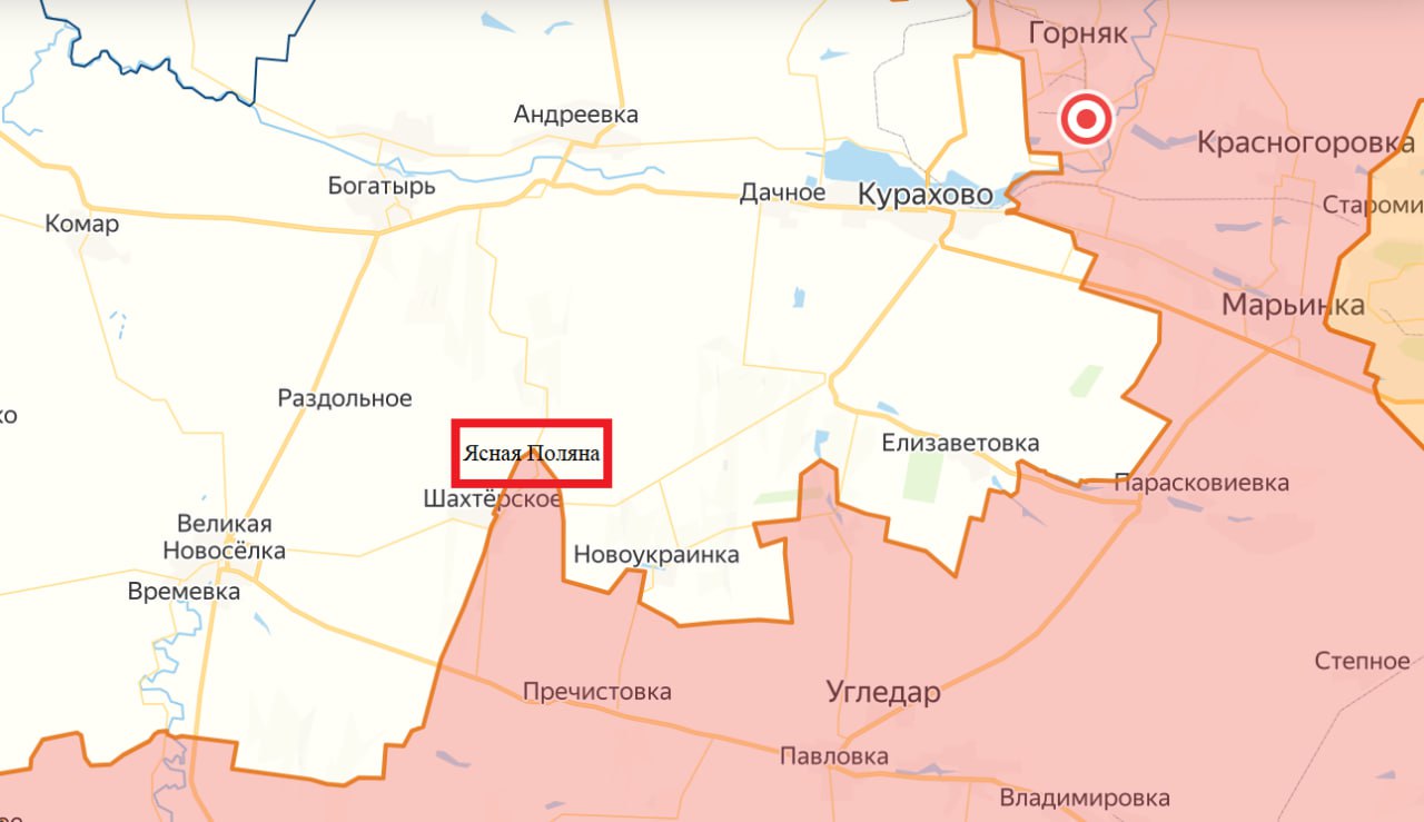 Ясная Поляна – посёлок с довоенным населением около 430 человек. Расположен в 13 километрах к востоку от Великой Новосёлки и в 22 километрах к юго-западу от Курахово. Вероятнее всего, дальше подразделения «Востока» двинутся от Ясной Поляны на север в сторону Разлива и Константинополя, чтобы перерезать трассу Н-15, по которой осуществляется снабжение Курахово и всей южно-донецкой группировки войск противника из Днепропетровской области. Перед ВСУ замаячил очередной котёл, сообщает военкор Александр Коц.