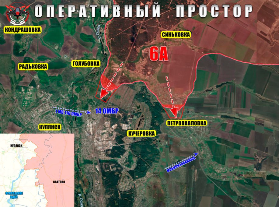 На КУПЯНСКОМ направлении ВС России расширяют зону контроля у Синьковки и у Кругляковки. Создаются условия для продвижения из Кругляковки на юг, в Загрызовку, вдоль р. Оскол, сообщает Телеграм-канал «Два майора» в утренней сводке 31 октября.