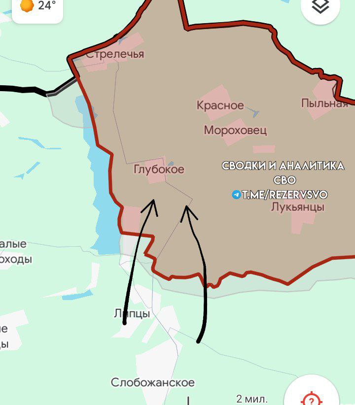 Новосёловка первая — наши распыляют силы и со стороны Уманского пошли в эту сторону. Есть продвижение по полю, в 1,5 км от населённого пункта.