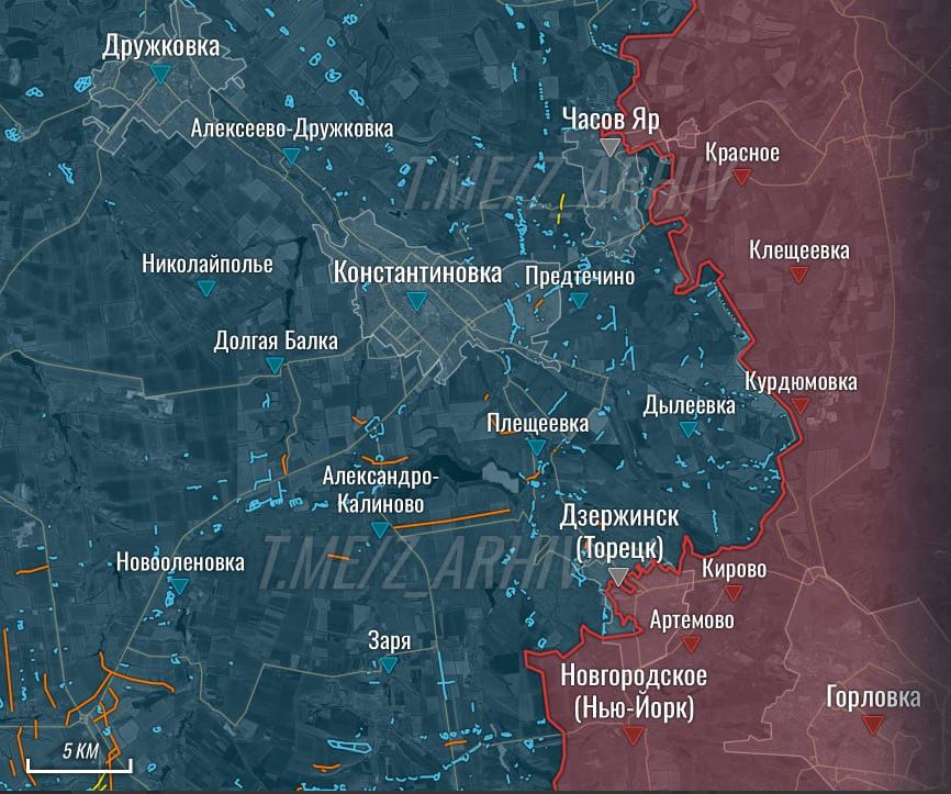 По линии Клещеевка – Ступочки. Наши немного отошли на позиции Клешня и оставили карьер. В серой зоне и опорник, который ранее называли Муравейник. Всушники также малыми группами продолжают заходить через него на позицию «Бегемот». Связана эта ситуация с тем, что главным направлением на сегодня является Покровское, а точнее, выход на границу ДНР в южной части Республики. Поэтому на Константиновском направлении нет того темпа, как на участке главного удара, пишет Телеграм-канал ANTISEPTIC.