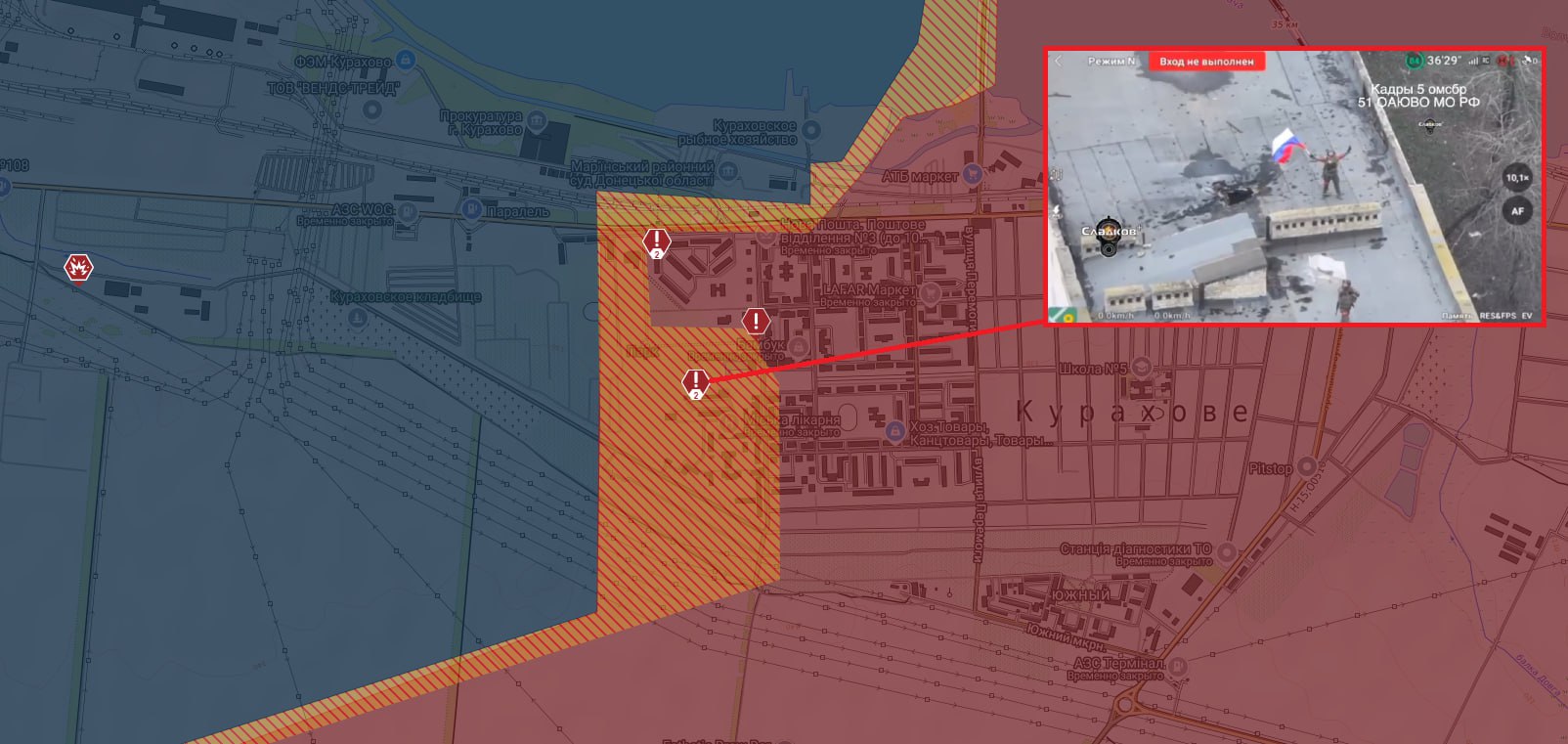 На КУРАХОВСКОМ направлении российские штурмовики пробиваются к дороге на Запорожье в районе посёлков Улаклы и Разлив, также продолжаются бои в районе н.п. Шевченко.