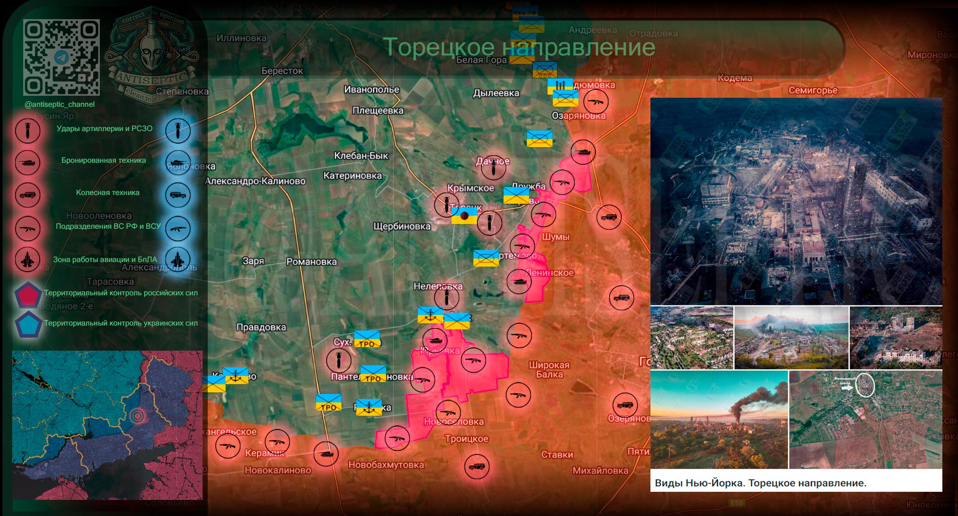 В Нью-Йорке (Новгородском) без каких-либо значимых изменений. Идут тяжёлые встречные бои. Помимо атак в центре города близ фенольного завода, наши бойцы пытаются расширить зону контроля в южной части населённого пункта, отмечает Телеграм-канал ANTISEPTIC.