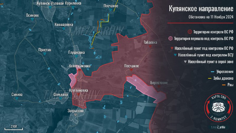 Также противник сообщает, что ВС РФ со стороны Синьковки продвинулись у Петропавловки и в направлении Купянска, сообщает военный эксперт Борис Рожин в своём Телеграм-канале.
