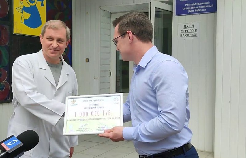 В рамках благотворительного проекта «Счастливое детство» Республиканскому специализированному дому ребёнка передали сертификат на 1 миллион рублей.