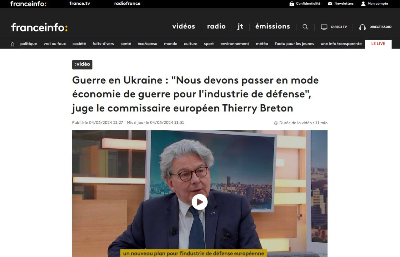 «Владимир Зеленский ошибся, рассуждая о том, что Евросоюз передал Украине только 300 тысяч снарядов из обещанного миллиона, не учитывая, что часть из этого числа Киев должен приобрести самостоятельно. В марте 2023 года 27 стран-членов ЕС приняли решение поставить за год один миллион снарядов. Я сказал «поставить», а не «передать». Существует три пути поставок боеприпасов. Безвозмездная передача – лишь один из них. Украина уже получила 300 тысяч снарядов, а к концу марта эта цифра вырастет до 550 тысяч. Остаются два других канала для поставок. Первый – это закупка Украиной снарядов напрямую. Она уже купила более 350 тысяч снарядов. Таким образом, это уже 900 тысяч. Ещё есть двусторонние поставки между определёнными соседними государствами, которые не раскрываются», – подробно объяснил еврокомиссар в эфире радиостанции Franceinfo. Иначе говоря, ЕС свои обещания очень даже выполняет, это на Украине не так считают, воспринимая «передать» как «подарить».