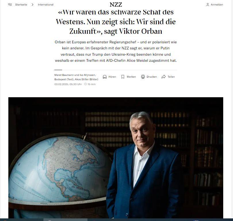 Премьер-министр Венгрии Виктор Орбан дал большое интервью швейцарскому изданию Neue Zürcher Zeitung (NZZ), в котором не обошлось без упоминаний Украины.