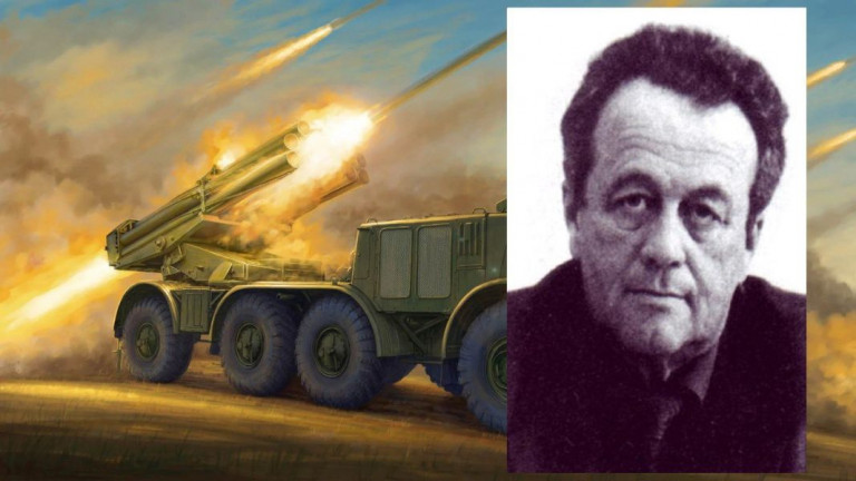 Заглавная иллюстрация: конструктор-оружейник Ю.Н. Калачников на фоне залпа созданной им РСЗО «Ураган».