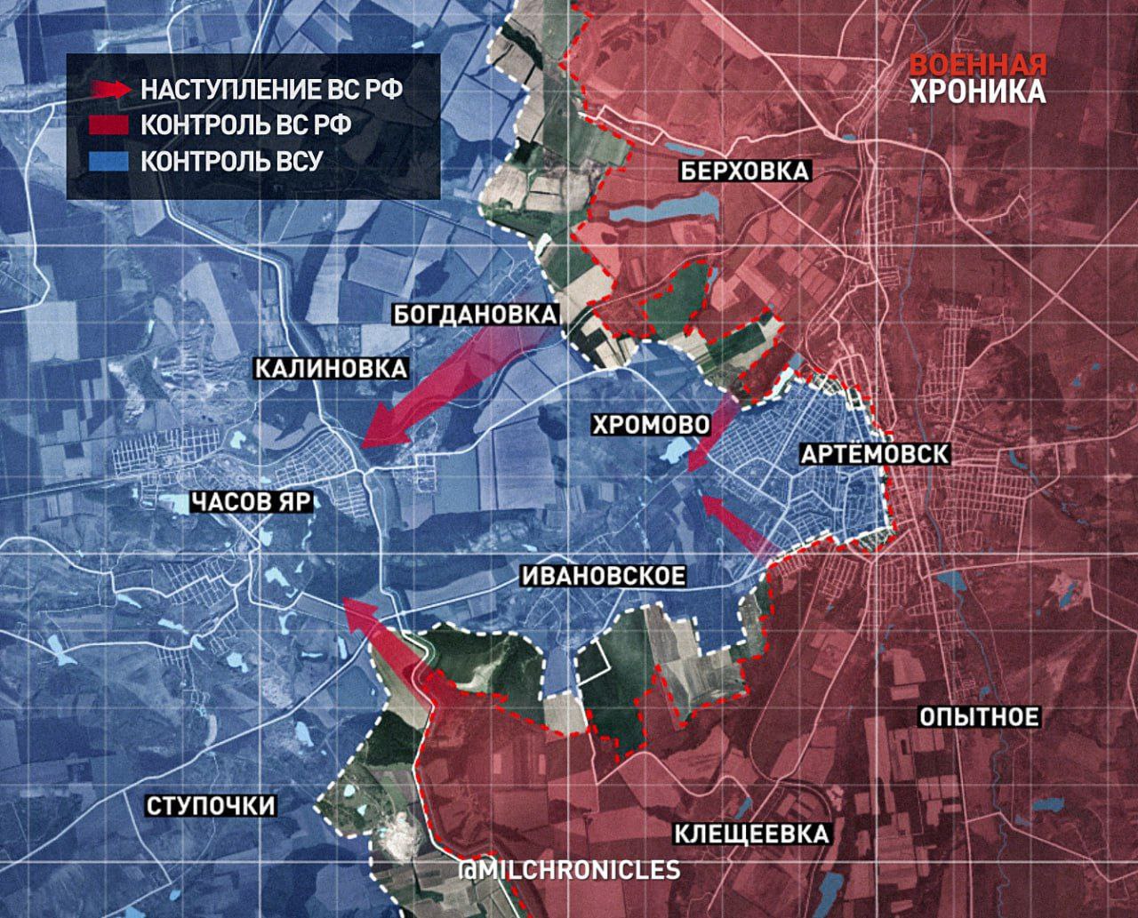 В Часов Яр с самого начала этого года украинский Генштаб отводил самые боеспособные подразделения ВСУ (сохранившие не менее 30 – 40% личного состава) из Артёмовска. Отсюда же происходило всё снабжение бахмутской группировки и артиллерийская поддержка, напоминает «Военная хроника».
