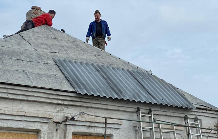 «Наши волонтёры всего за три дня полностью восстановили крышу и дымоход в одном из домов. Люди очень нам благодарны, удивляются тому, как быстро и хорошо всё получается. В отремонтированном доме живёт многодетная семья, родители детей глухие, отец не может поднимать тяжести. Целый год в доме протекала крыша, особенно в детской»,