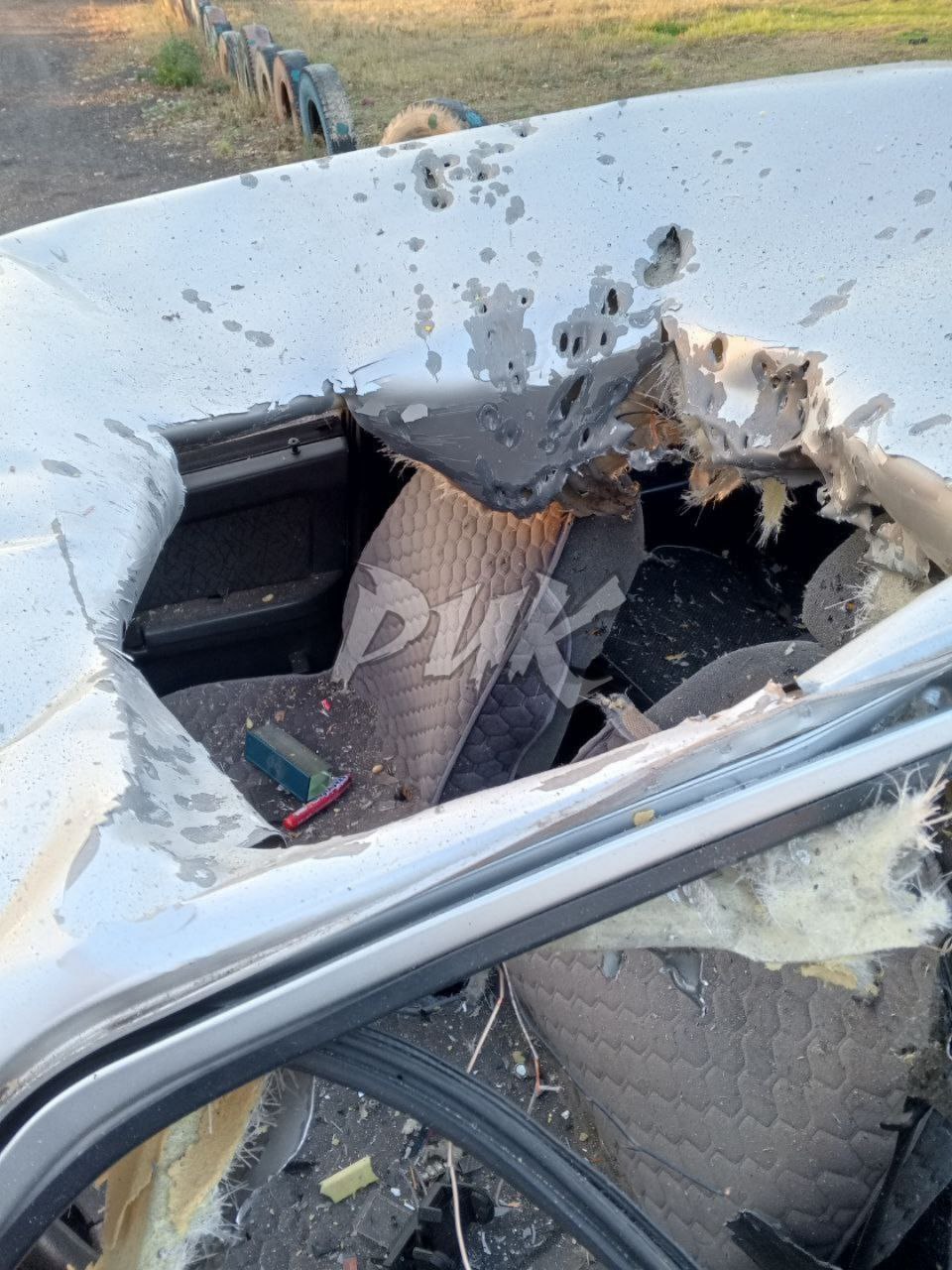 Последствия удара БПЛА ВФУ по легковому гражданскому автомобилю на улице Фруктовой в посёлке Стальсбыт ДНР показал Телеграм-канал Приходько РИК.