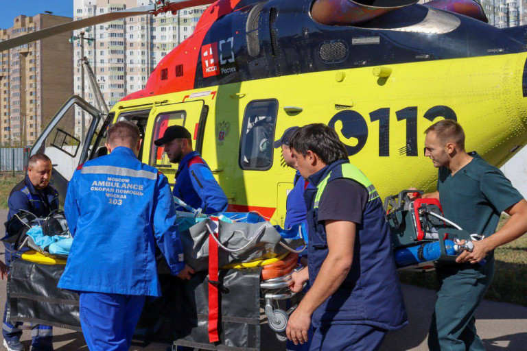 Курск встретил детей на реанимобиле, после чего их уже ожидал вертолёт. На следующий день в Москву тем же маршрутом была доставлена и мама ребёнка, которая также пострадала от осколков.