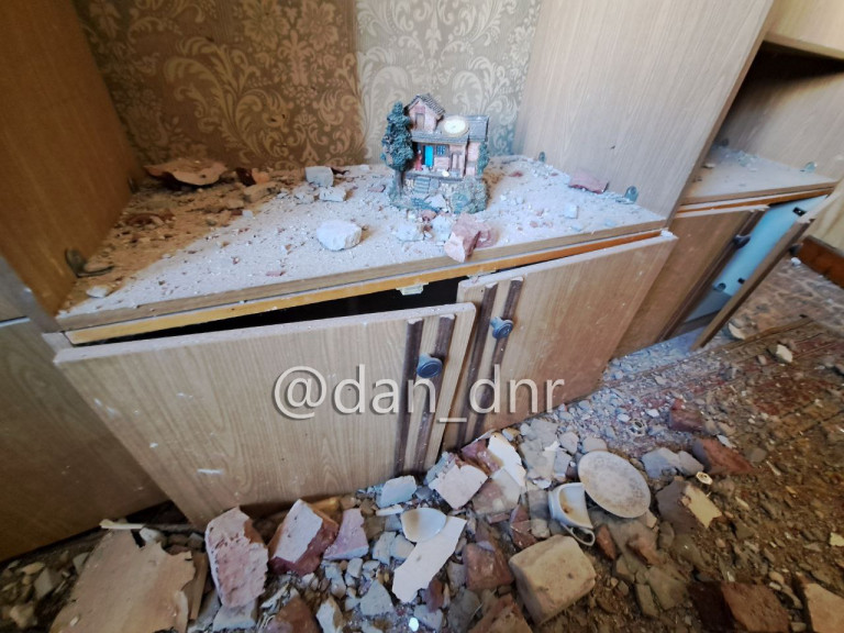 Последствия прямого попадания снаряда ВСУ по жилому дому в Горловке показал Телеграм-канал Донецкое агентство новостей.