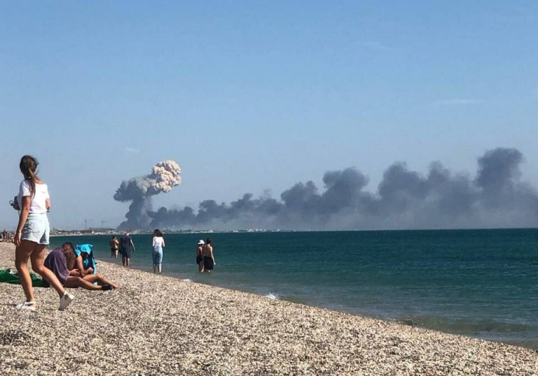 На пляже Севастополя, по которому ударил Киев, в настоящее время работают сапёры и водолазы.  Они обследуют территорию в поисках частей ракеты. На место трагедии приехали и пожарные машины. Повсюду виднеются следы крови и разбросанные вещи туристов.