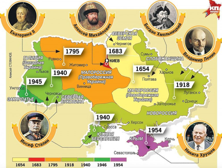 В составе Российской империи и СССР территория, считающаяся сегодня Украиной, увеличилась по площади в пять раз. Вся Юго-Восточная Украина с её шахтами, заводами, полезными ископаемыми и выходом к морю – это российские области, подаренные Украинской ССР советской властью. Остальная Украина – тоже общерусские земли, на которых при СССР позволили соорудить национальный гибрид под названием Украина. Вместо благодарности России Украины вздумала жить по-русофобски. Дурак пользуется и не благодарит, потому всё и теряет.