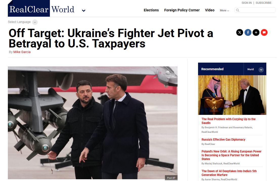 «В разгар продолжающихся на Украине военных действий, в Киеве публично объявили о намерении закупить новые истребители у Швеции и Франции, а не у Соединённых Штатов. После того, как Украина получила почти 180 миллиардов долларов американской помощи (включая бесплатные самолёты), Зеленский решил обратиться к другим союзникам, может быть, потому что теперь Украине придётся платить за вооружение?», – пишет американское издание Real Clear World и настаивает на том, что Вашингтон должен обязать Зеленского закупать только американское оружие.