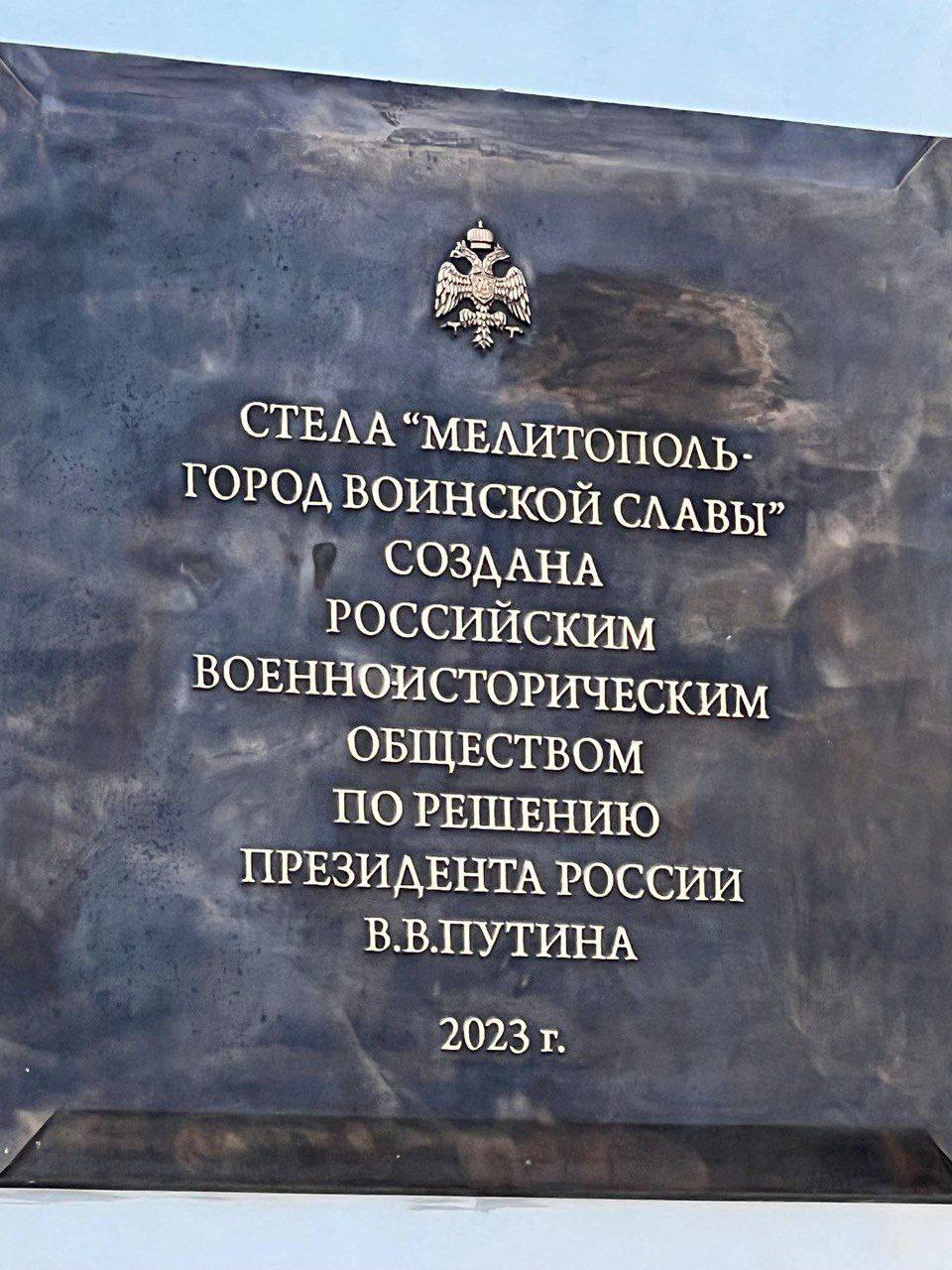 Герб Российской Федерации установили на стелу «Мелитополь – Город воинской славы», пишет Телеграм-канал Мелитополь онлайн новости. факты. инсайд.