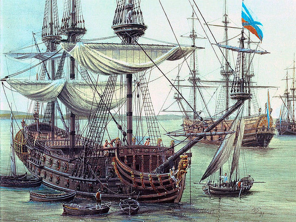 Оживление царило в эти осенние дни 1723 года, 300 лет тому назад, в порту Ревеля*. Вызвано оно было получением 3 ноября (по новому стилю) флагманом (начальником) Ревельской эскадры шаутбенахтом (контр-адмиралом) российского флота Яном ван Гофтом приказа императора Петра I довооружить и дооснастить для дальнего плавания фрегаты «Амстердам Галей» («Амстердамская галера») и «Декрон де Ливде» («Венец любви»), оба 32-пушечных, голландской постройки, с командами в 204 и 200 человек.