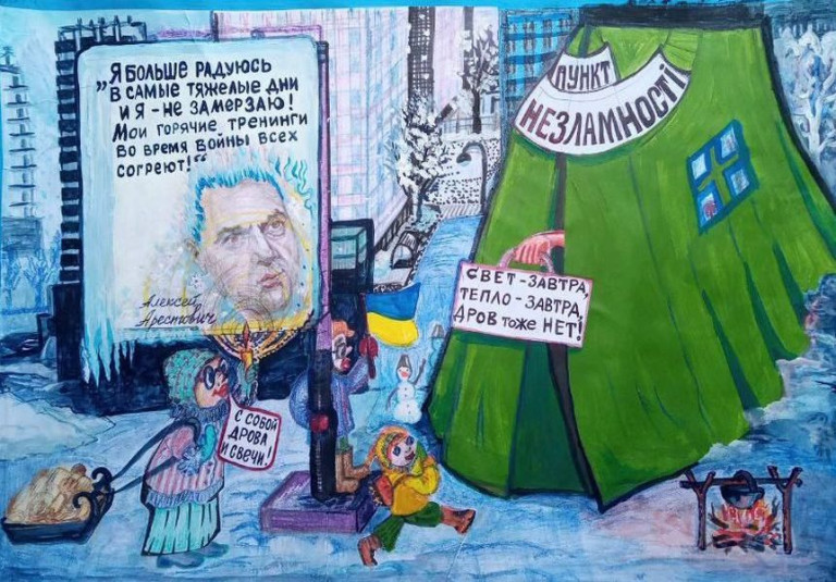 На заглавном фото: так киевляне рисуют пресловутые «пункты незламности». Источник – телеграм-канал Неарестович