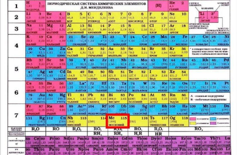 Наш комментарий: Ну, это не страшно. Если учесть, что принято постановление вообще убрать из обязательного курса точные науки, можно предположить, что переименованную таблицу Менделеева никто не увидит. Кстати, а как с самим Менделеевым быть-то? Он же русский, и таблица его имени.