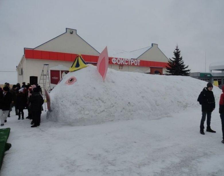 В Одесской области украинские активисты вместе с заместителем градоначальника Подольска  вылепили самую большую в регионе свинью из снега. Хотели поставить рекорд к Дню Соборности.