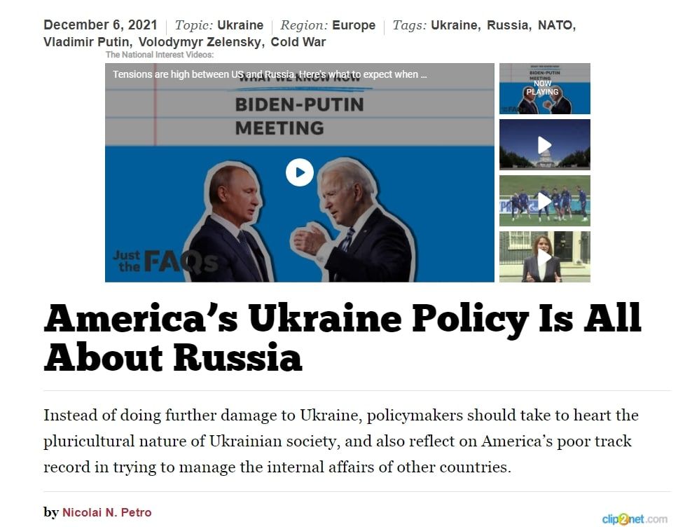При этом, подчёркивает TNI, в украинском расколе, который произошёл в 2014 году, можно обвинить Соединённые Штаты. Это они своим желанием вывести Киев из-под российского влияния вдохнули новую энергию в националистические силы Украины, после чего в стране начались гонения на всё русское, включая культуру, язык, да и самих этнических русских граждан Украины, которых в стране, по некоторым данным, более половины.