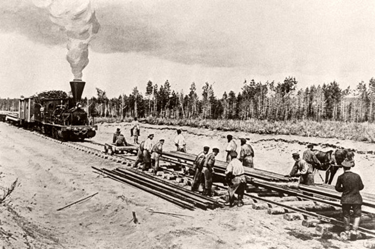 Заглавное фото: Рабочие на строительстве полотна Транссиба. Дореволюционная фотография.