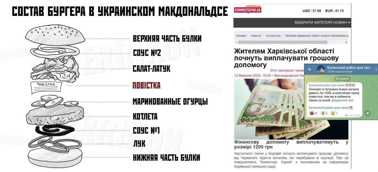 На местах военкомы работают со своим креативом. В Харьковской области граждан пригласили на выдачу денежной компенсации, а заодно раздали явившимся повестки. В ряде городов «охотники за головами» использовали для этого большие очереди в «возвратившиеся» долгожданные Макдоналдсы». Так сказать, вот вам биг-мак и повесточка!