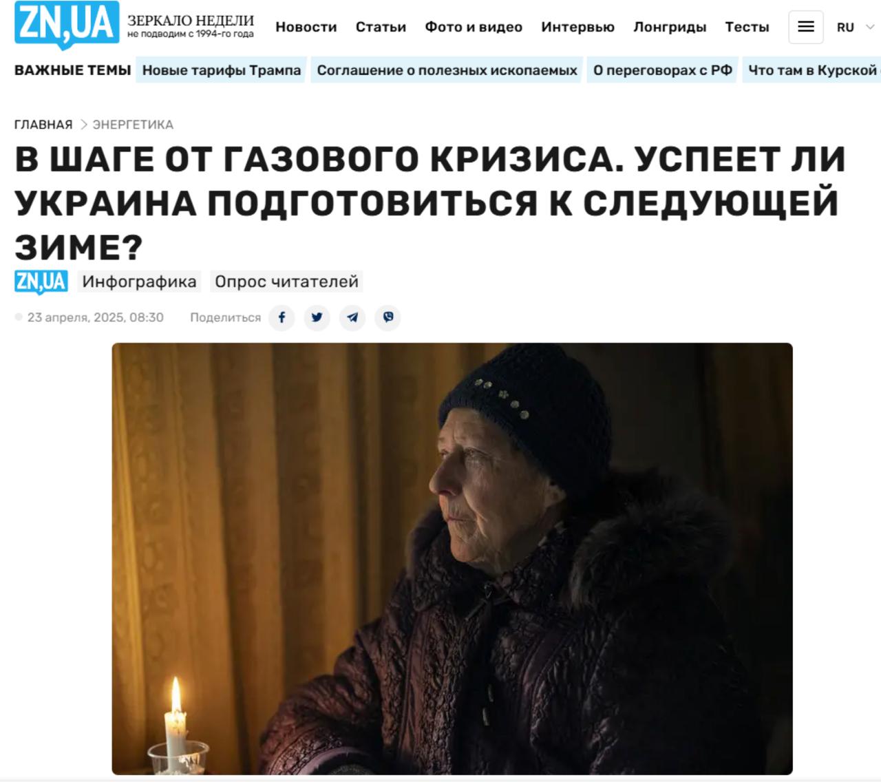При этом по его оценкам, в 2025 году общая добыча уменьшится до 18,16 млрд. кубометров, при этом потребление вырастет до 22,9 млрд., что создаст дефицит газа в размере 4,73 млрд кубометров. Однако автор лжёт, что главной причиной этого стали именно удары ВС РФ по критической газовой инфраструктуре. Экс-глава «Укртрансгаза» наряду с другими украинскими экспертами не скрывают, что подобные удары были на протяжении 2023-2024 годов. Так почему же острая нехватка в голубом топливе возникла только с того момента, как российский газ перестал идти транзитом в Европу?