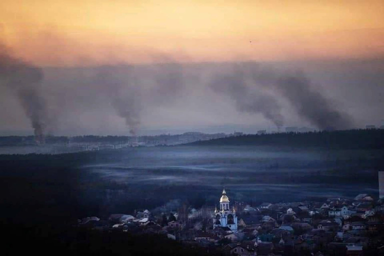Местные предполагают, что горит химзавод "Краситель". Вернее, то, что от него осталось за времена самостийности Украинушки.
