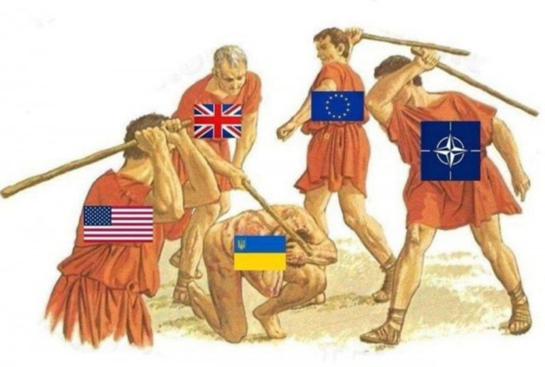 На заглавном фото: «Главные и стратегические партнёры» призывают Украину к контрнаступлению, рисунок из социальных сетей.