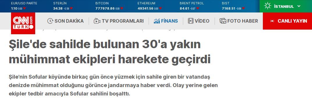 «В ходе погружения водолазов были обнаружены не менее 28 боеприпасов, из них восемь были доставлены на берег для последующего уничтожения», – сообщает телеканал CNN Turk со ссылкой на заявление властей Стамбула.