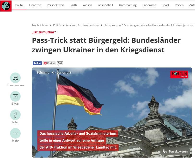 Подобные заявления могут иметь серьёзные последствия для военнообязанных граждан Украины, пишет Focus. И напоминает: если раньше они могли бы продлить паспорта или заменить утерянные в посольстве или консульствах на территории ФРГ, то теперь Украина ограничила условия предоставления этой услуги. А это ещё один инструмент киевского режима для оказания давления. И теперь не только в Гессене граждане Украины попадают в ловушку.