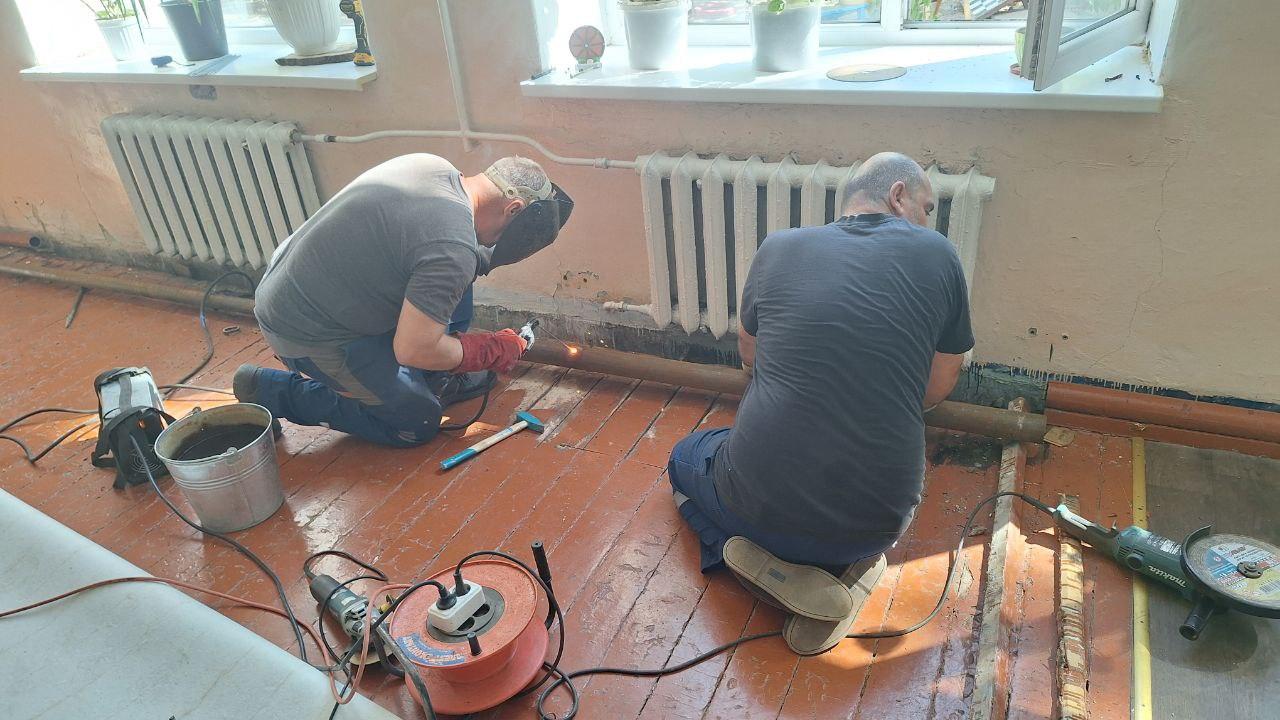 Специалисты рязанского предприятия «Теплосети» заменили дефектный участок трубопровода в музыкальном классе и подводку батарей в столярном классе учреждения.