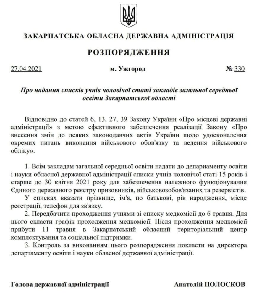Украина берёт на воинский учёт школьников. Управления образования некоторых украинских областей в срочном порядке составляют списки украинцев призывного возраста. Как можно догадаться, это делается в рамках закона «О внесении изменений в некоторые законодательные акты Украины относительно усовершенствования отдельных вопросов исполнения воинского долга и ведения воинского учёта». Согласно этому закону, на Украине теперь можно призвать на службу резервистов без объявления мобилизации. Прямо со школьной скамьи.