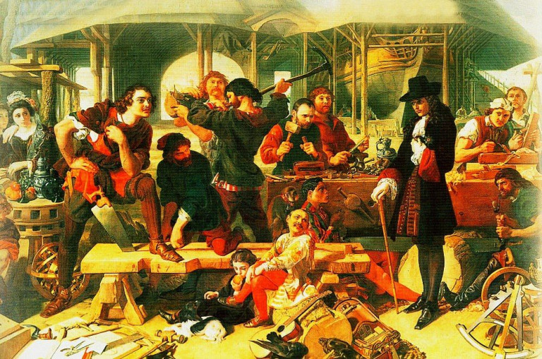 Заглавная иллюстрация: Пётр I в Дептфорде (Англия) в 1698 г. Художник Даниел Маклиз