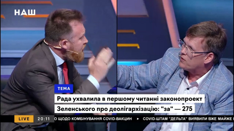 Тем временем украинские правители пытаются не мытьём, так катаньем заблокировать работу канала «НАШ», прибегая к испытанным бюрократическим методам. Возглавляет травлю, как всегда, главный «регулятор вещания» Нацсовет по вопросам телевидения и радиовещания (в народе – Нацрада). Один из недавних примеров – назначение внеплановой проверки на региональном телеканале «Винничина». Её организуют в связи с тем, что в День Конституции, 28 июня, там транслировались программы «Нашего», якобы не разрешённые условиями лицензии. У регионального вещателя затребовали документы о взаимном сотрудничестве. А придирки и судебные иски «регулятора» к «Нашему» не прекращаются с самого начала вещания, то есть с 2018 года.