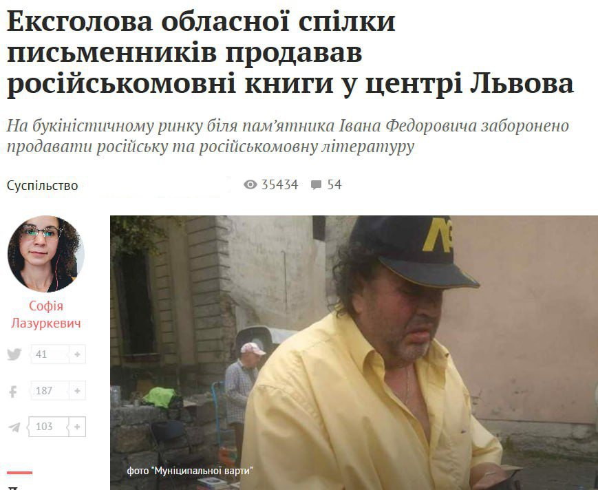 Впрочем, «Муниципальной варте» наплевать, что полиция не обнаружила нарушений законов, они всё равно составили акты о «нарушении общественного порядка» и пообещали всем продавцам книг на русском навсегда запретить торговлю на букинистическом рынке Львова.