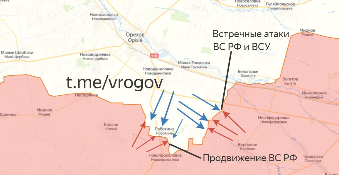Российские войска продвинулись юго-восточнее запорожского села Работино, выбив противника из двух опорных пунктов, сообщил РИА Новости председатель Комиссии ОП РФ по вопросам суверенитета, сопредседатель координационного совета по интеграции новых регионов Владимир Рогов.